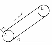 ,A、B之间距离s=6m。传送带的倾角为α=300, ( g=10m/s2)