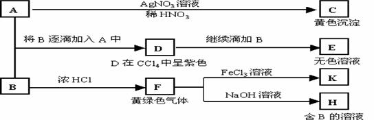 20. A和B均为钠盐的水溶液,A呈中性,B呈碱性并具有氧化性。下述为相关实验步骤和实验现象:![]()