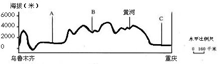 读乌鲁木齐至重庆的地形剖面示意图(15分)