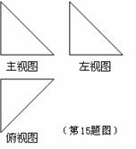 15.如右图,一个空间几何体的主视图、左视图、俯视图为全等的等腰直角三角形,如果直角三角形的直角边长为1,那么这个几何体的体积为 .![]()