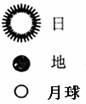 5.日全食必须太阳、月亮、地球在一条直线的时才能发生。月球挡住了太阳的全部光线,下图表示日全食位置关系的是