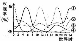 一般情况下,右图中表示北京地区电视收视率变化的曲线是(世界时指的是中时区的区时)