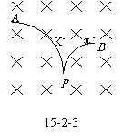 ,其中K-介子和π-介子带负的基元电荷,π0介子不带电。一个K-介子沿垂直于磁场的方向射入匀强磁场中,其轨迹为圆弧AP,衰变后产生的π-介子的轨迹为圆弧PB,两轨迹在P点相切,它们的半径RK-与Rπ