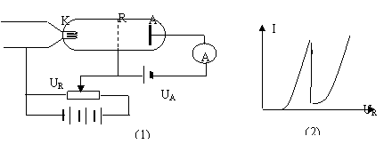 德国物理学家弗兰克林和赫兹进行过气体原子激发的实验研究。如图(1)他们在一只阴极射线管中充了要考察的汞蒸气。极射发出的电子受阴极K和栅极R之间的电压UR加速,。电子到达栅极R时,电场做功eUR。此后电子通过栅极R和阳极A之间的减速电压UA。通过阳极的电流如图(2)所示,随着加建电压增大,阳极电流在短时间内也增大。但是到达一个特定的电压值UR后.观察到电流突然减小。在这个电压值上,电于的能量刚好能够激发和它们碰撞的原子。参加碰撞的电子交出其能量,速度减小,因此刻达不了阳极.阳极电流减小。eUR即为基态气体原于的激发能。得到汞原子的各条能级比基态高以下能量值:4.88eV, 6.68eV, 8.78eV, 10.32eV(此为汞原子的电离能)。若一个能量为7.97eV电子进入汞蒸气后测量它的能量大约是