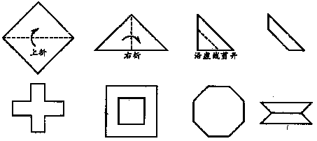 10、如图所示,把一个正方形三次对折后沿虚线剪下,则所得图形是![]()