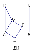 (2) 若将正方形AEFG绕点A按顺时针方向旋转, 连结DG,在旋转的过程中,你能否找到一条线段的长与线段DG的长始终相等.并以图2为例说明理由.