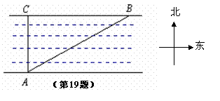 19.如图,为了测量一条河的宽度,一测量员在河岸边的C处测得对岸一棵树A在正南方向,测量员向正东方向走180米到点B处,测得这棵树在南偏西60°的方向,求河的宽度(结果保留根号).