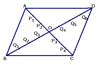 21、如图,平行四边形ABCD的对角线AC、BD相交于点O,点P1、P2、O、P3、P4是线段AC上的点,且AP1=P1P2=P2O=OP3=P3P4,点Q1、Q2、Q3、Q、Q4、Q5、Q6是线段BD上的点,且BQ1=Q1Q2=Q2Q3=Q3O=OQ4=Q4Q5=Q5Q6=Q6D.