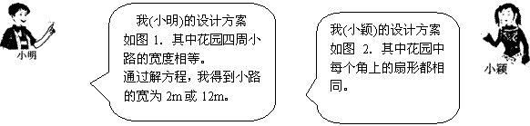 在一块长16m,宽12m的矩形荒地上,要建造一个花园,要求花园所占面积为荒地面积的一半.下面分别是小明和小颖的设计方案.