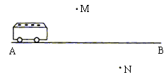 18、一辆汽车在直线型的公路AB上由A向B行驶M、N分别是位于公路AB两侧的村庄,汽车行驶到哪一点时,与村庄M、N的距离相等?请在图上找到这一点。(写作法,保留作图痕迹,不用证明)