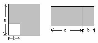 2、如图,从边长为a的正方形内去掉一个边长为b的小正方形,然后将剩余部分剪拼成一个矩形。上述操作所能验证的等式是( )