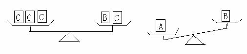 表示三种不同的物体,现用天平称了两次,情况如图所示,![]()