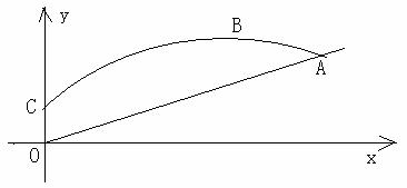 刻画,汽步枪射击时子弹所经的路线是一条射线OA,如图所示,(1)试求飞碟到达的最高点B的坐标;(2)比赛要求运动员在飞碟下落过程中离地面5米时把飞碟击中,试求出子弹所经路线OA的函数关系式。