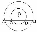 如图,两个圆都以点O为圆心,小圆的弦CD与大圆的弦AB在同一直线上。你认为AC与BD的大小有何关系?说明理由。