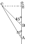如图,一艘轮船以每分钟240米的速度向正北方向航行,行驶到A处测一灯塔C在它的北偏西30o的小岛上,轮船继续向北航行,5分钟后到达B点,又测得灯塔C在它的北偏西45o方向上。据有关资料记载,在距灯塔C为中心1500米范围内有暗礁。这艘轮船不改变前进方向继续行驶是否有触礁的危险?为什么?![]()