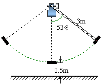 如图所示,秋千链子的长度为3m,静止时的秋千踏板(大小忽略不计)距地面0.5m.秋千向两边摆动时,若最大摆角(摆角指秋千链子与铅垂线的夹角)约为