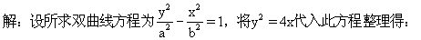 例4 已知抛物线y2=4x和以坐标轴为对称轴、实轴在y轴上的双曲