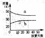 19、某研究性学习小组将溶质质量分数不同的两瓶酸溶液,在实验室中敞口放置,测得它们的质量与放置天数的关系如右图所示,则a、b分别代表