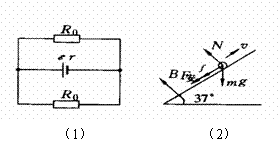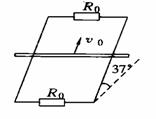 ,电阻不计,间距L=0.3m,长度足够长,导轨处于磁感应强度B=1T,方向垂直于导轨平面向上的匀强磁场中.导轨两端各接一个阻值为R0=2Ω电阻,另一横跨在导轨间的金属棒质量m=1kg,电阻r=1Ω棒与导轨间的滑动摩擦因数μ=0.5,当金属棒以平行于导轨的向上初速度υ0=10m/s上滑,直至上升到最高点过程中,通过上端电阻电量