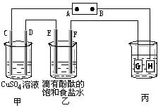 24.(9分)如下图装置所示,C、D、E、F都是惰性电极,甲、乙中溶液的体积和浓度都相同(假设通电前后溶液体积不变),A、B为外接直流电源的两极。将直流电源接通后,F极附近呈红色。