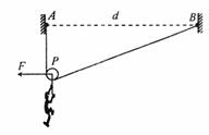 [枣庄市]15.(8分)特种兵过山谷的一种方法可简化为图示情景。将一根长为2d的不可伸长的细绳两端固定在相距为d的A、B两等高点,绳上挂一小滑轮P,战士们相互配合,就可沿着绳子滑到对面。如图所示,战士甲用水平力F拉住滑轮,质量为m的战士乙吊在滑轮上,脚离地,处于静止状态,此时AP竖直。然后战士甲将滑轮从静止状态释放,若不计滑轮摩擦及空气阻力,也不计滑轮的质量,求: