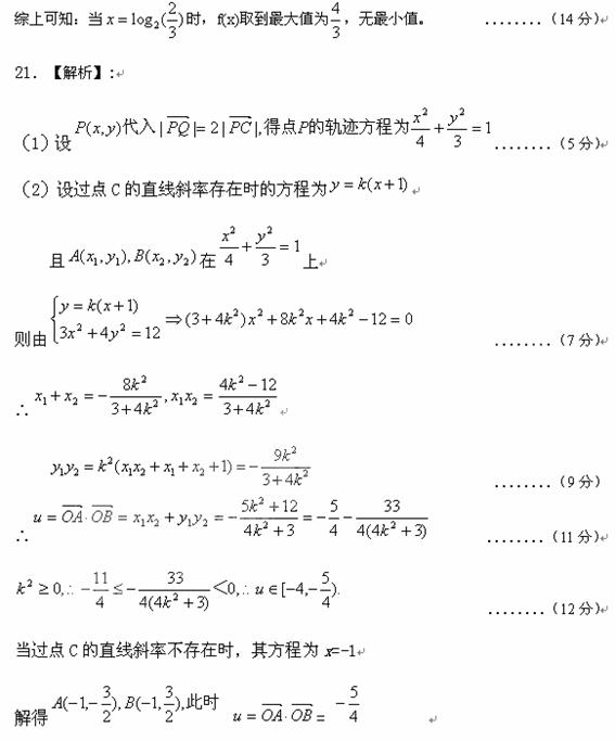 于是有 22+a=20,解得 a=-2. ........(11分)