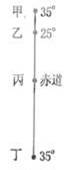 图3为大陆西岸四个地点的地理位置示意图。读图回答6--7题![]()