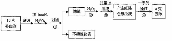 (4)若实验无损耗,则每片补血剂含铁元素的质量 g(用含a的代数式表示)。