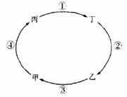 若此图为热力环流侧视图,甲乙为相距不远的陆地,②④为垂直气流,①③为水平气流,则甲乙丙丁四处气压的关系为:( )