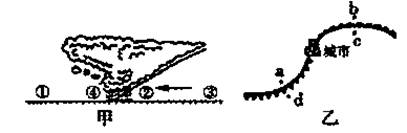 A.甲图中①地气温最高 B.乙图中的城市天气晴朗