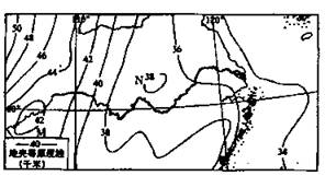 读我国大陆部分地壳等厚度线图,完成36~38题。