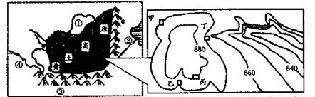 下图为黄土高原区域简图及高原上某地等高线地形图。据此回答39~40题。