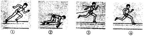 4.(1分)下面为短距离跑时的四个技术动作,这四个技术动作的先后顺序是 ( )