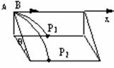 4. A、B两质点以相同的水平速度v0抛出,A在竖直平面内运动,落地点为P1,B沿光滑斜面运动,落地点为P2,不计阻力,如左下图所示,比较P1、P2在x轴上的远近关系是![]()