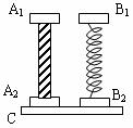 物块A1、A2、B1和B2的质量均为m,A1、A2用刚性轻杆连接,B1、B2用轻质弹簧连结。两个装置都放在水平的支托物C上,处于平衡状态,如图所示。今突然迅速地撤去支托物C,让物块下落。在除去支托物的瞬间,A1、A2受到的合力分别为f1和f2,B1、B2受到的合力分别为F1和F2,则