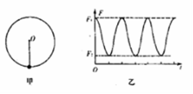 12. 一宇航员到达半径为R、密度均匀的某星球表面,做如下实验:用不可伸长的轻绳拴一质量为m的小球,上端固定在O点,如图甲所示,在最低点给小球某一初速度,使其绕O点在竖直面内做圆周运动,测得绳的拉力大小F随时间t的变化规律如图乙所示。F1=7 F2,设R,m,引力常量为G,F1为已知量,忽略各种阻力。以下说法正确的是