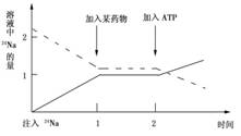 6.科学家在研究钠通过细胞膜的运输方式时,做了下述实验:先向枪乌贼神经纤维里注入微量的放射性同位素24Na,不久可测得神经纤维周围溶液中存在24Na。如果在神经纤维膜外溶液中先后加入某药物和ATP,测得周围溶液中24Na的量如下图实线所示。据图作出下列推断,错误的是