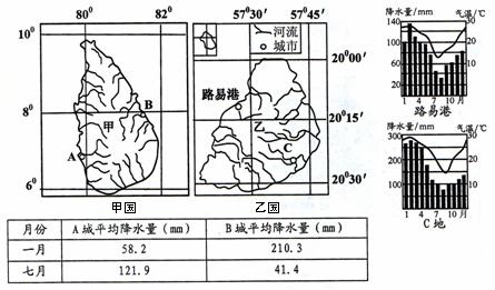(十)读甲、乙两国水系示意图和气候资料,回答下列问题:(19分)