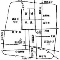 14.下图为北宋东京(今开封)示意图(注:①州桥夜市②彩瓷作坊③瓦子④徽商会馆),其中设置了两处错误,它们是
