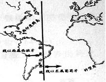 1494年,西班牙和葡萄牙在教皇仲裁下,划定了一条如图所示的分界线。这意味着