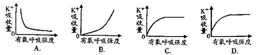 20.能正确表示水稻有氧呼吸强度与K+吸收量关系的是 ( )
