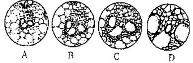 29.实验中用同一显微镜观察了同一装片4次,每次仅调整目镜或物镜、细准焦螺旋,结果如下图所示。请问其中视野最暗的是 ( )