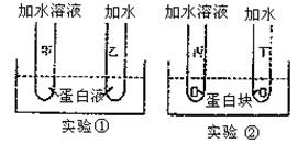 33.猪笼草是一种食虫植物,为了验证猪笼草分泌液中有蛋白酶。某学生设计了两组实验,如下图所示。在35℃水浴中保温一段时间后,甲、乙试管中加入适量双缩脲试剂,丙、丁试管中不加双缩脲试剂,下列实验能达到目的的是 ( )