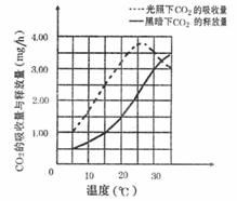39.以测定的CO2吸收量与释放量为指标,研究温度对某绿色植物光合作用与呼吸作用的影响,结果如图所示。下列分析正确的是 ( )