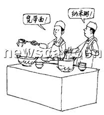 右边的漫画名叫“‘食’髦”,讽刺那些本来是旧
