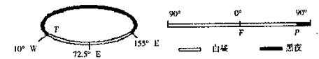 8.若该日一架飞机在F地日出时起飞,飞行途中飞行员始终可以看到“旭日东升”的景象,最后在T地降落。则飞机的飞行方向和飞行时间分别为 ( )