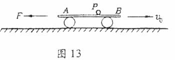 如图13所示.平板车长为L=6m.质量为M=10kg,上表面距离水平地面高为h=1.25m,在水平面上向右做直线运动,A、B是其左右两个端点。某时刻小车速度为vo=7.2rn/s.在此时刻对平板车施加一个方向水平向左的恒力F=50N,与此同时,将一个质量m=l kg为小球轻放在平板车上的P点(小球可视为质点,放在P点时相对于地面的速度为零).