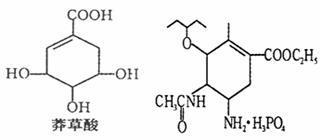 10.达菲是治疗甲型H1N1流感的有效药物之一。合成达菲的原料是莽草酸,已知莽草酸和达菲的结构简式如下图所示,则有关说法中