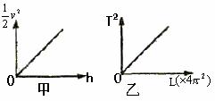 在下述两个实验中:①验证机械能守恒定律;②用单摆测当地的重力加速度. 某学生正确地作出了两条实验需要的图线,如图中甲、乙、所示.跟据坐标轴代表的物理量判断:甲是实验 的图线,其斜率表示