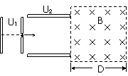 (1)微粒进入偏转电场时的速度v0是多大?(2)若微粒射出偏转电场时的偏转角为θ=30°,并接着进入一个方向垂直于纸面向里的匀强磁场区,则两金属板间的电压U2是多大?